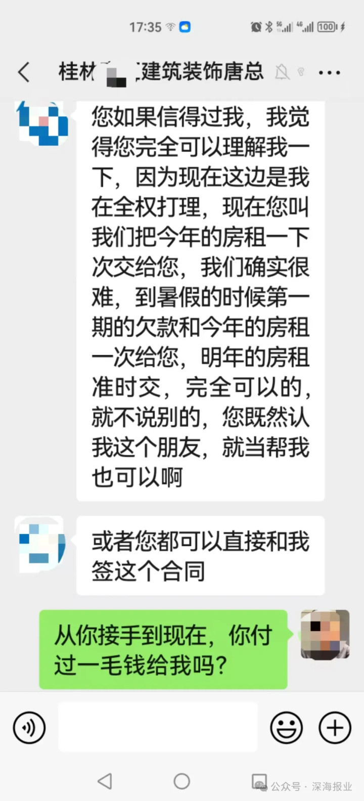 但潘先生表示,陈某升在撒谎。当初曾有其他人出价15万要租他的房子,由于考虑到陈某升很有诚意,说自己举家从南宁到桂林创业,想支持他发展,就按第一年9万元开始的低价租给了他。