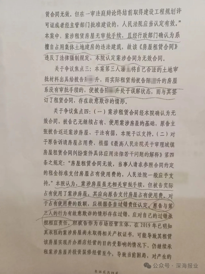 2024年11月18日,阳朔县法院二审判决认为,案涉租赁房屋无审批手续,且经行政部门确认为系擅自占用集体土地建房的违法建筑,认定《房屋租赁合同》无效;潘先生将自己合法的土地审批材料出具给陈某升,而实际租赁给陈某升的房屋系没有审批手续的,使陈某升处于误解状态,而与其签订了租赁合同,存在故意欺诈的情形。